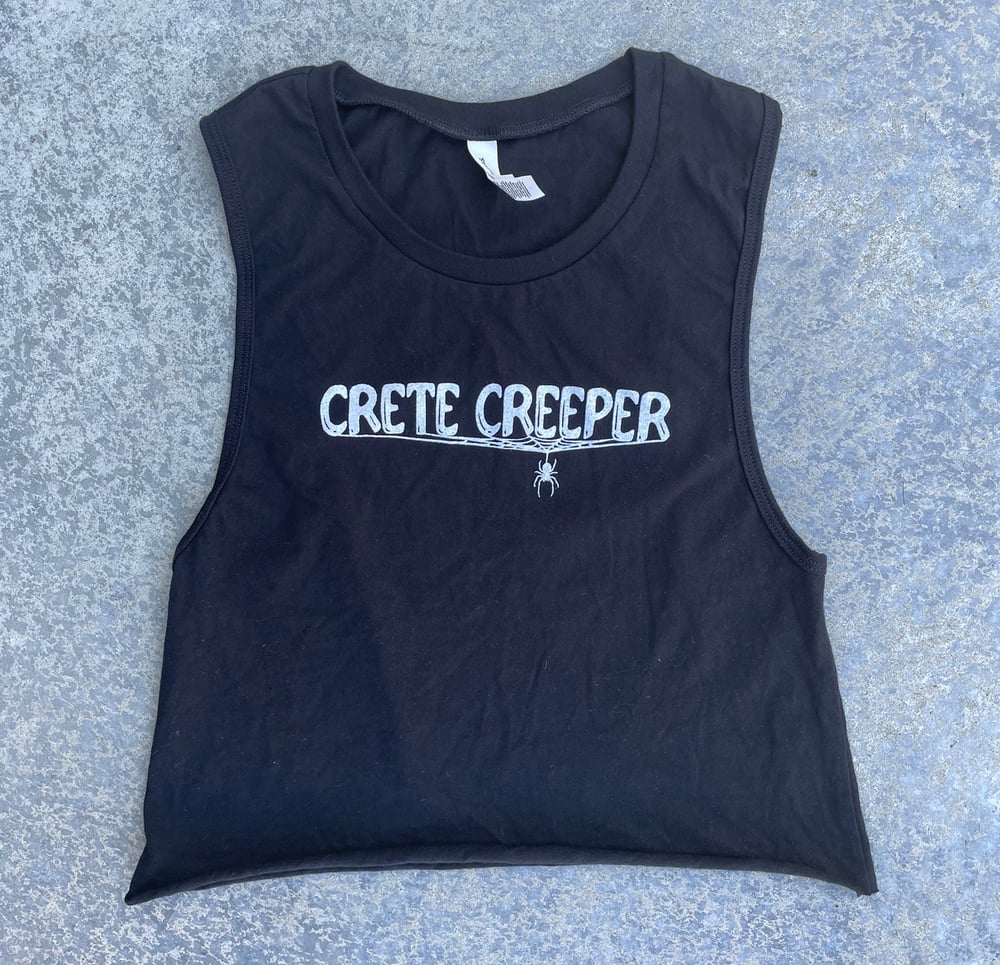 The CC Spider racerback tank adds a creepy twist to our logo font. This lightweight tank has low cut armholes to help keep you cool and comfortable during the most heated of sessions.