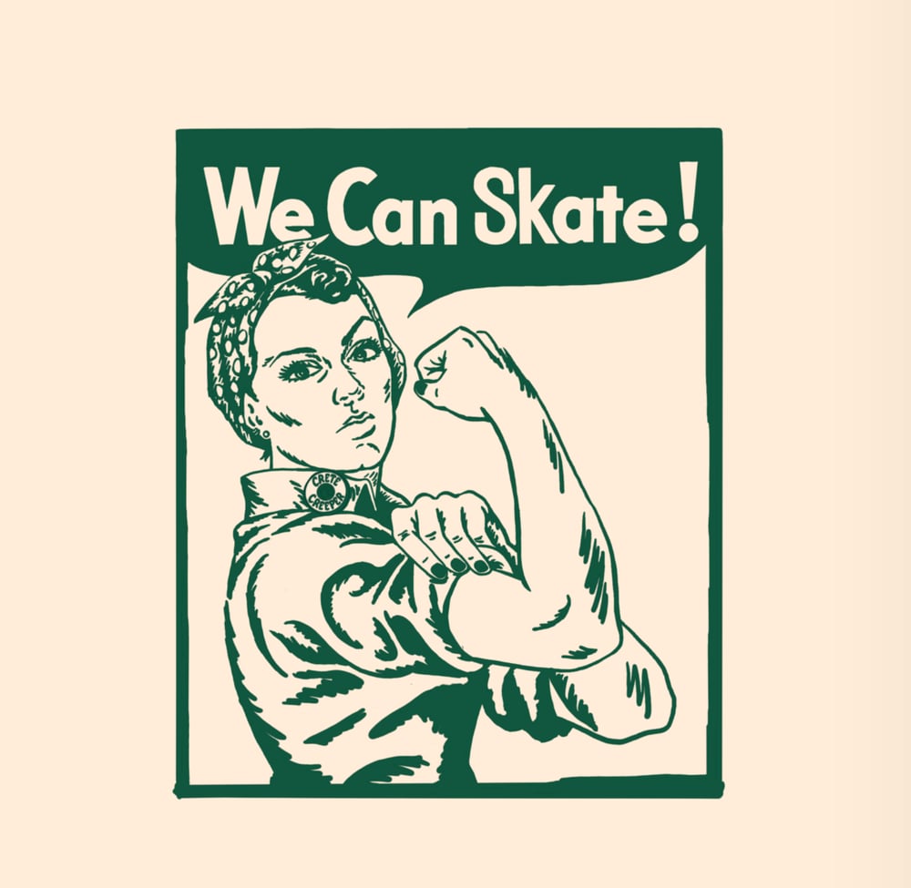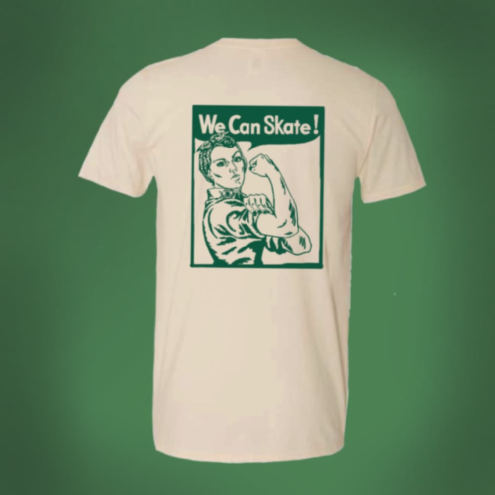 The CC tee depicts Skate Rosie at her finest! CC logo on the front left chest, with Rosie design on back.